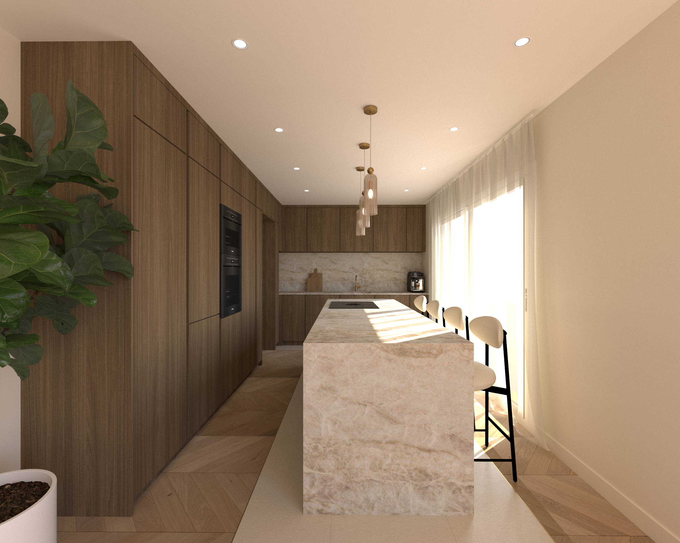 Mon approche s’ancre dans une conception architecturale sensible, où volumes, lumière et matières dialoguent avec justesse. J’affectionne les matériaux actuels et intemporels : pierre naturelle, bois, travertin, céramiques texturées..., associés à des textiles naturels comme le lin ou la laine. La lumière structure l’espace, révèle les reliefs et participe à l’équilibre des lieux. Chaque projet est pensé dans une écriture sobre et cohérente, où fonctionnalité, matière et émotion s’unissent pour créer des intérieurs durables et harmonieux.